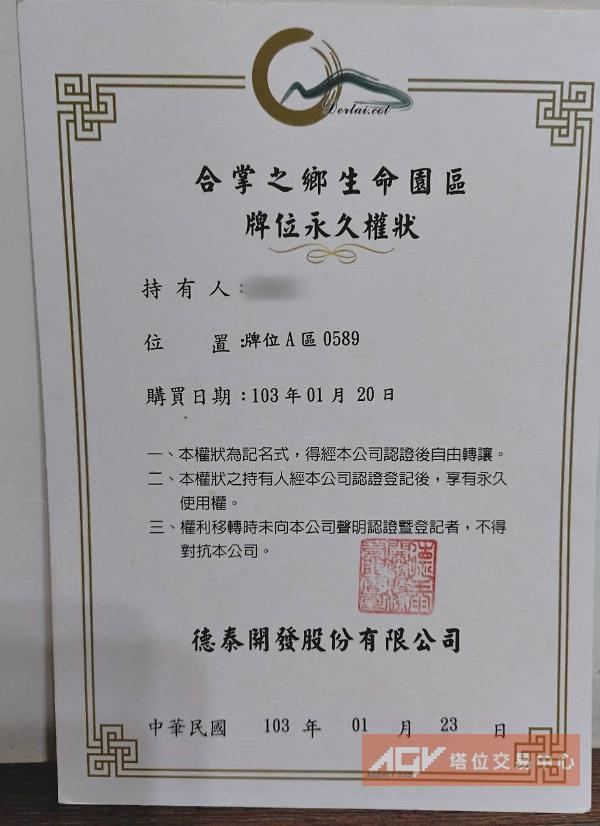 高雄靈骨塔 合掌牌位-慈雲寶塔-A區0589