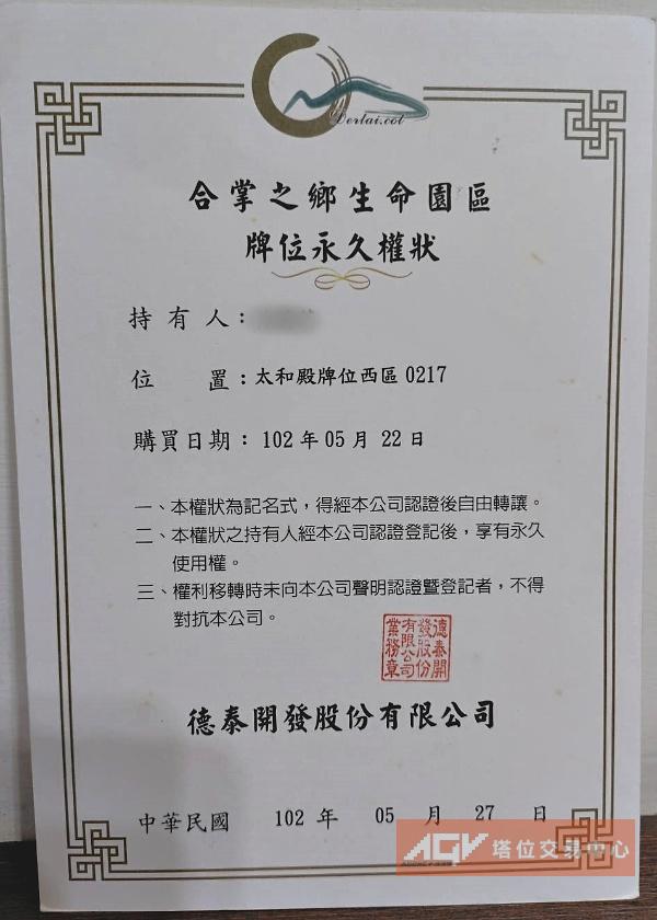 合掌牌位-慈雲寶塔-7個 太和殿牌位C區0217 殯葬塔位自售