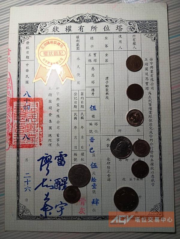 吉祥型塔位 ( 前後放 夫妻可放2人 ) 不含永久管理費 及 過戶費用