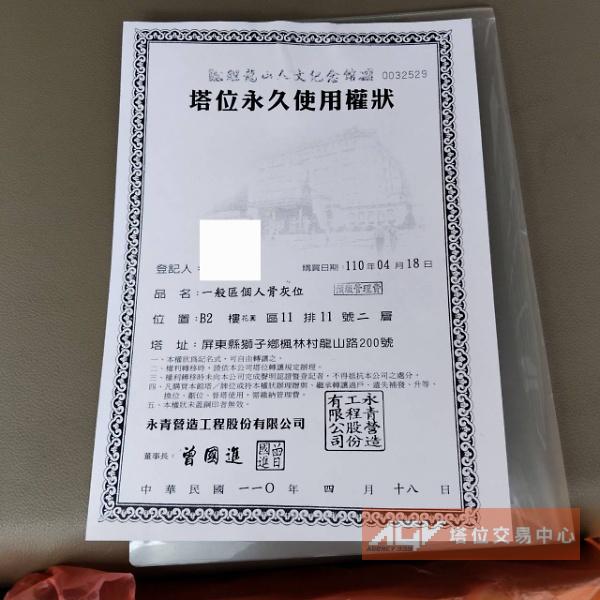 全台唯一同時擁有土地.建物及塔位使用權狀的精品宗祠
