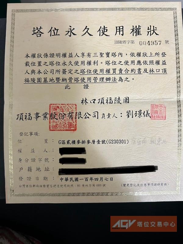林口頂福陵園-祖先牌位、塔位