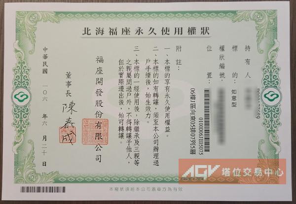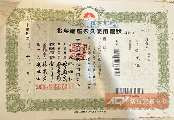 自售北海福座七樓個人位坐西向東含永久管理費