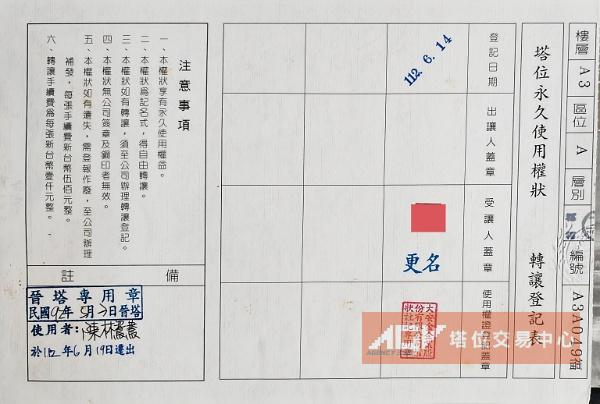 過戶費金額(新台幣) : 1,000
